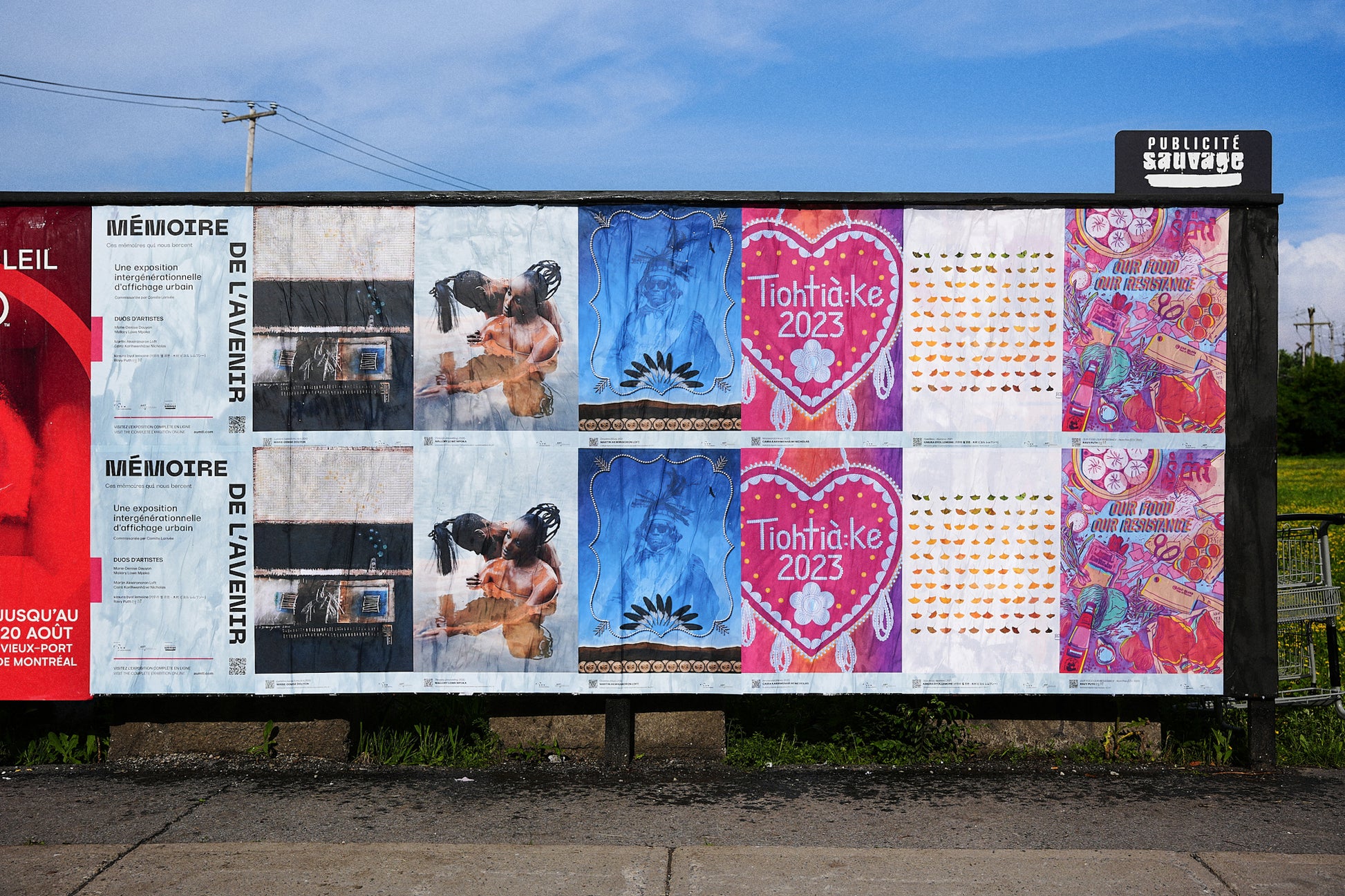 From July to September 2023, these posters were exhibited in the streets of Montréal · Tiohtià:ke on Publicité Sauvage’s palisades.